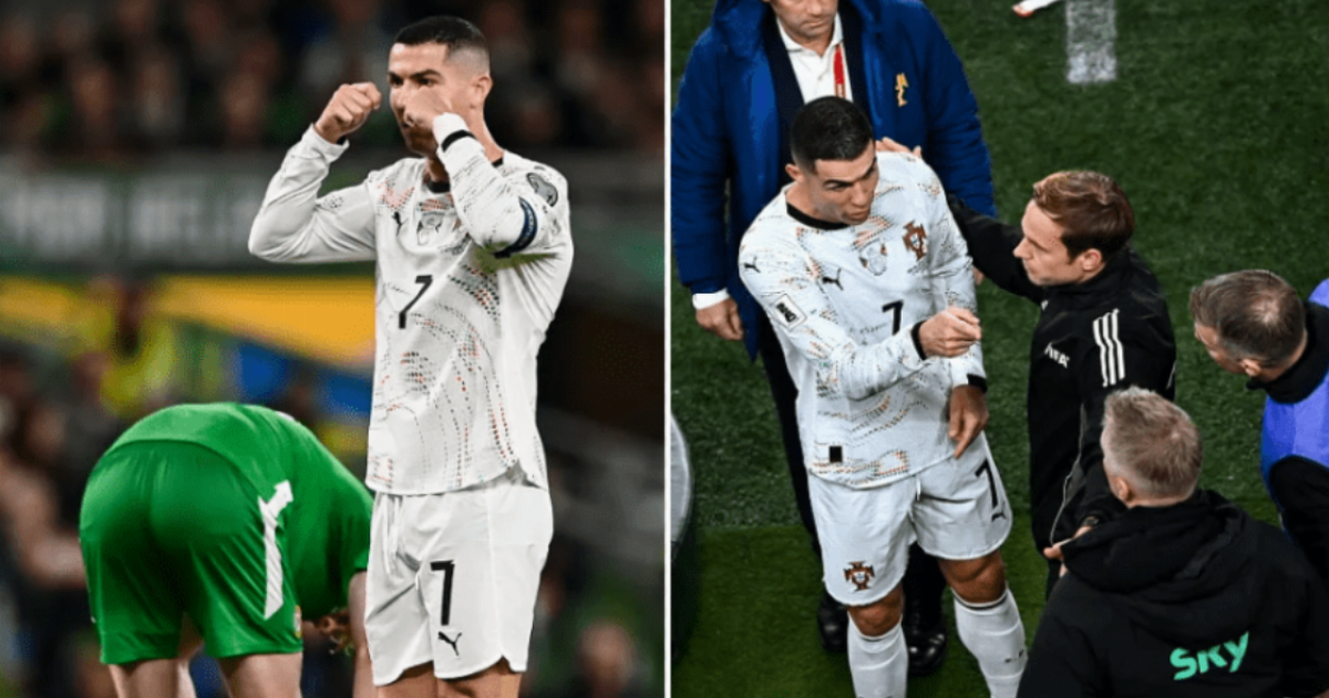 Ronaldo was given his marching orders within the 62nd minute, initially shown a yellow card after swinging an elbow at defender Dara O’Shea.