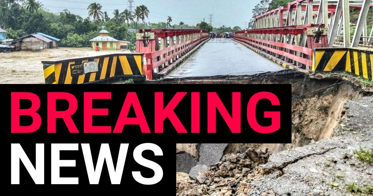 Condition of a bridge cut off by flooding in North Tapanuli Regency, North Sumatra