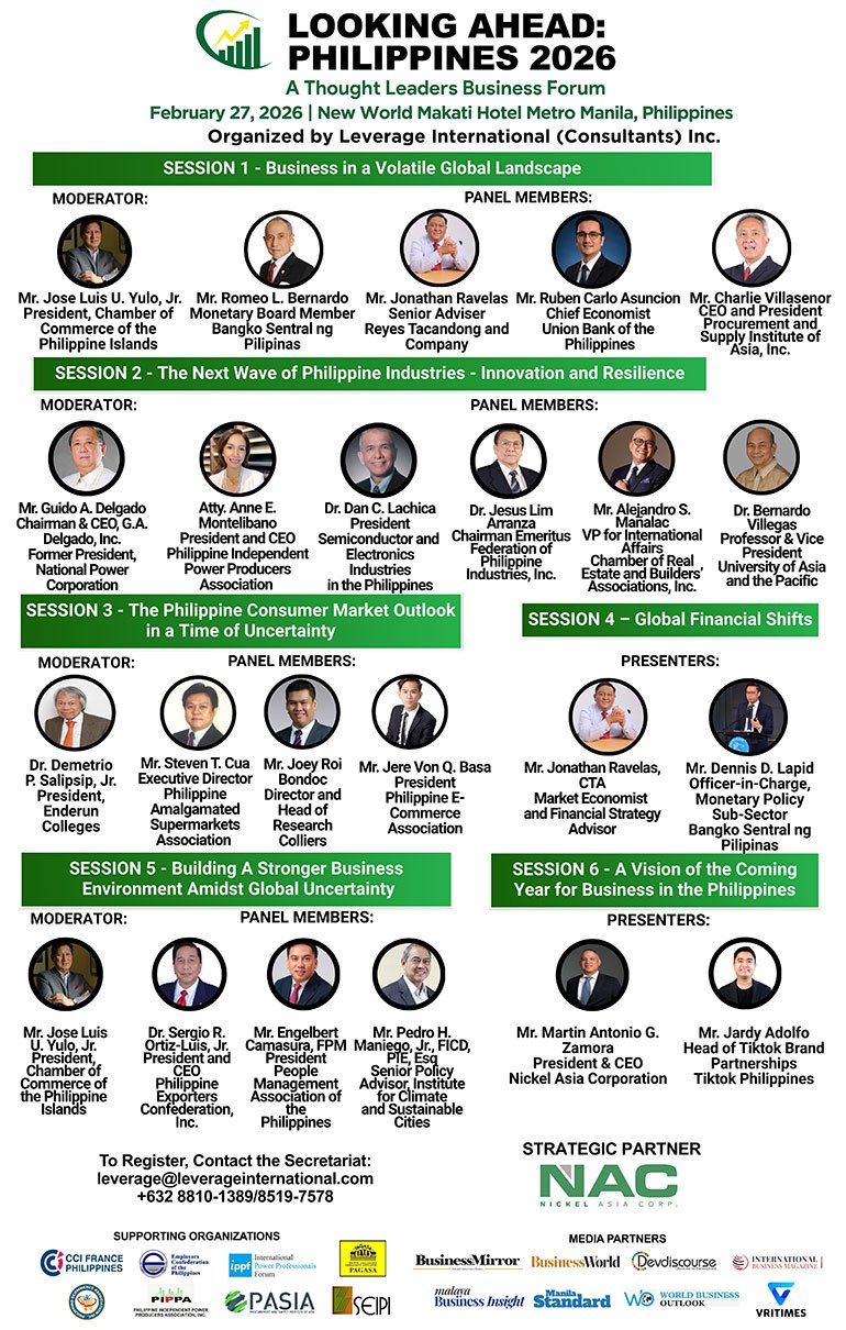 Looking Ahead: Philippines 2026 will feature high-level dialogues on economic trends, industry innovations, consumer behavior, and financial shifts which are shaping the business environment within the Philippines and across the globe.