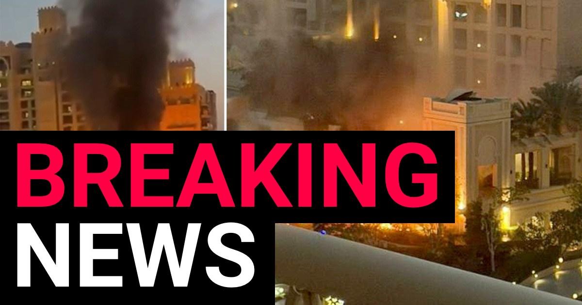 Smoke and flames were seen billowing from near the beachside Fairmont The Palm Hotel, after several bangs were heard by holidaymakers across the Emirati city.