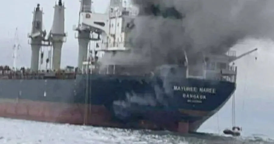 Images circulating online showed thick black smoke rising from the vessel, identified because the Mayuree Naree.