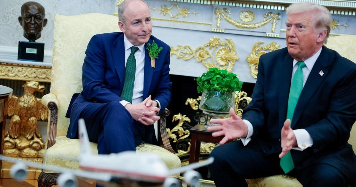 After the meeting within the Oval Office, decorated with clovers, each Martin and Trump attended a ‘Friends of Ireland’ lunch, where the US President encouraged Ireland to purchase American natural gas.