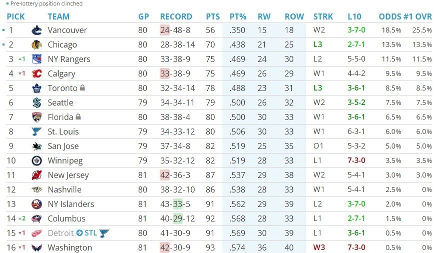 The chances of winning the draft lottery as of April thirteenth