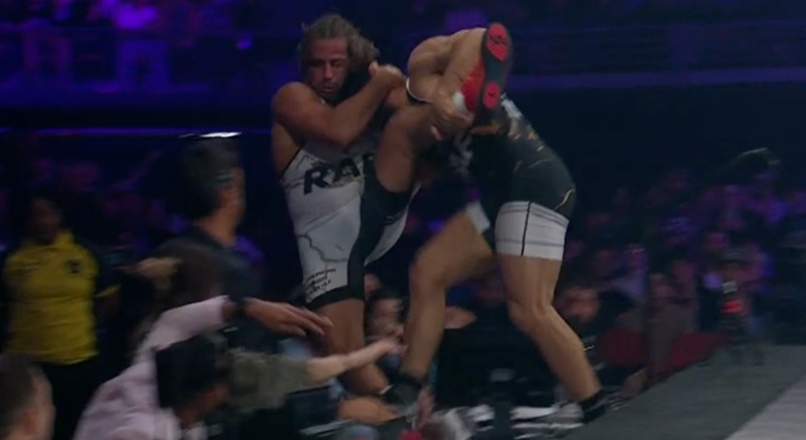 Kurt Angle disagreed with the concept, telling Sonnen on commentary that the stage is considerably larger than the confines of the mat. Tsarukyan then suggested that for his next RAF outing they need to double the dimensions of the stage.