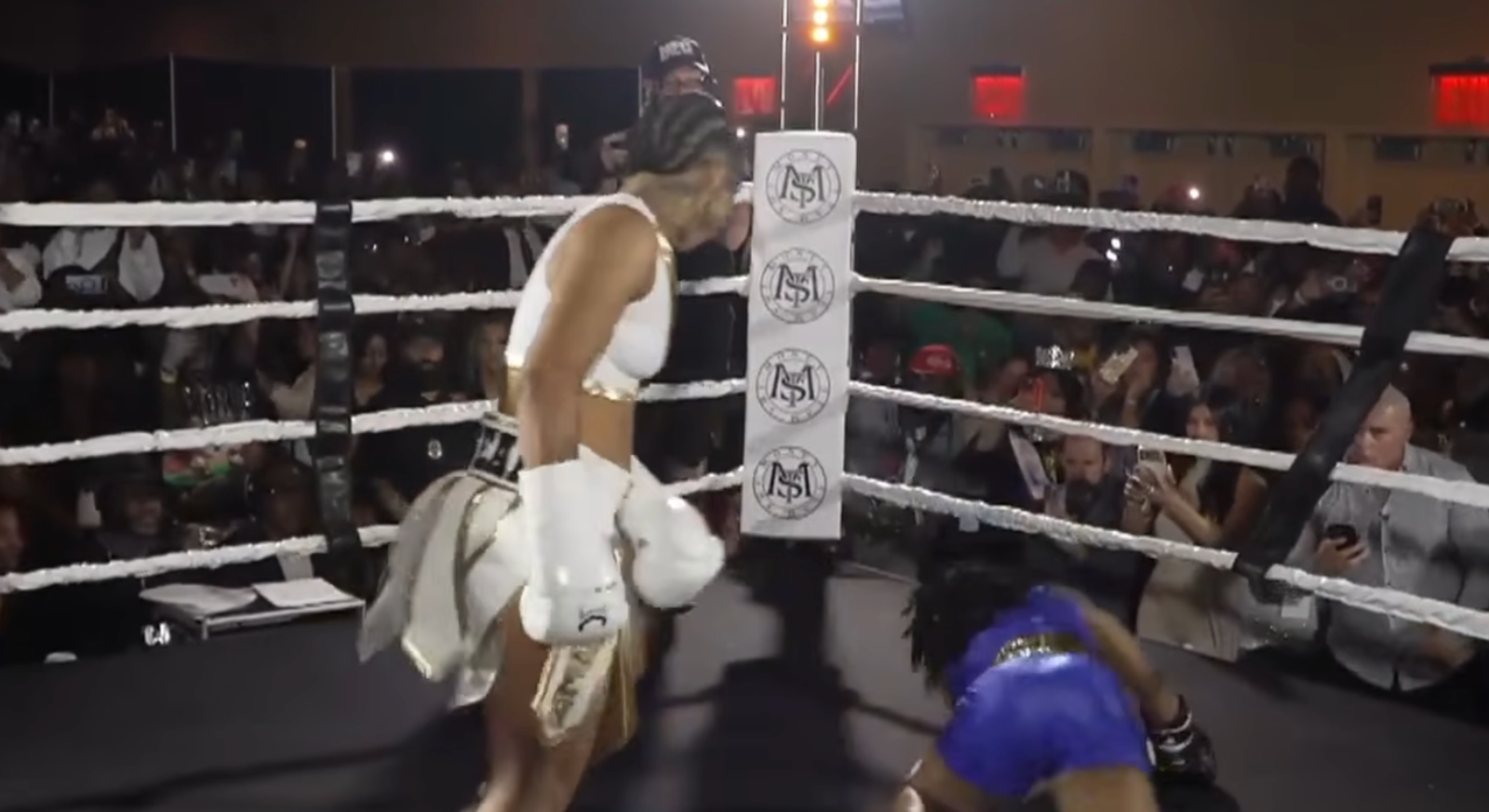 Rock showed some real power at the top of the primary as she floored Zion with a thudding right hand, but an absurdly long count from guest referee Jeff Mayweather allowed it to get to the second. The fight was never really out of the rapper’s control, as she bossed the second.