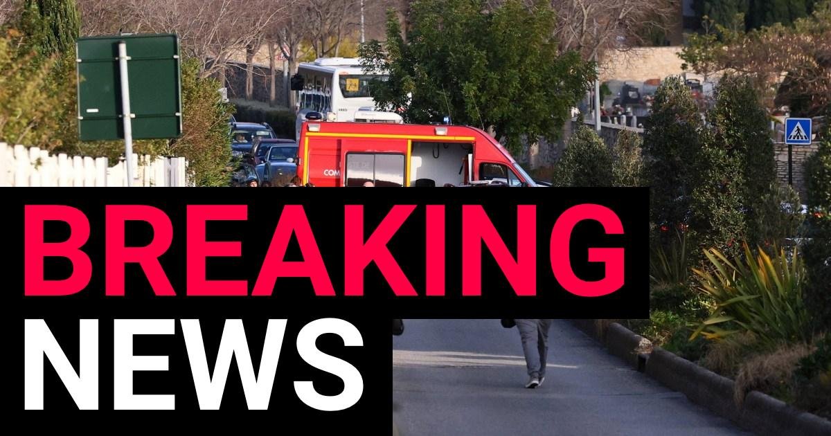 French firefighters and rescue services work near the La Guicharde middle school after a teacher was seriously injured…