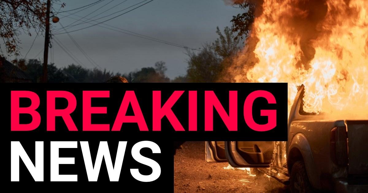 Ukrainian soldiers inspect a vehicle recently struck by a Russian FPV kamikaze drone that ambushed them near the…
